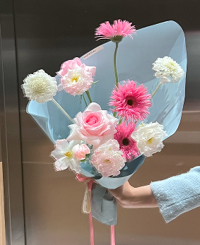 保持花束包裝,每天從花束中間緩慢倒入半杯水。(花束根部扎有防水袋)